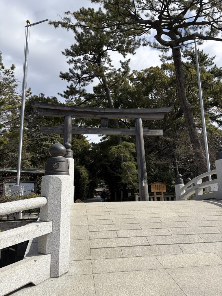 ↑神門の内側。広々とした空間です。平日でも参拝者は多いのですが、人混みなんて発生しません。